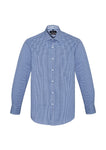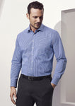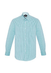 Features : Executive-fit shirt, Yarn dyed check soft textured stretch cotton blend fabric, Regular collar with stripe trim inside collar stand, Gros-grain trim, Front pocket, Inverted back pleats, Contrast button stitch