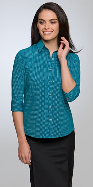 STYLE FEATURES 8 fashion colours available Wonder Button® Front pintuck detail front 2 back vertical darts 2 button adjustable cuff Smoke colour buttons Durable easy care fabric with In built...