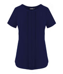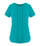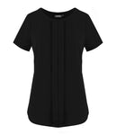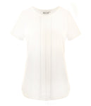 Style Features Womens Short Sleeve Drape Top Box Pleat Front Round Neck Double Layer Chiffon Body Short Sleeve with Notch Detail   FABRIC : 95% Polyester/ 5% Elastane Knit SIZES WOMENS :...