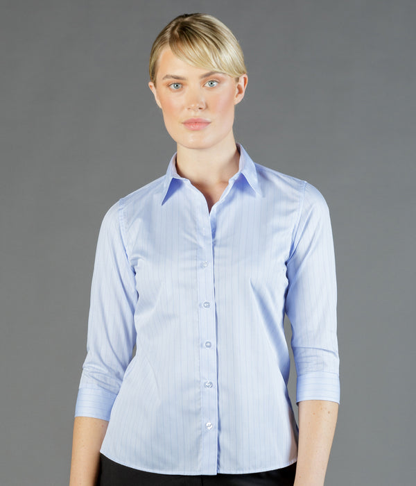 Style Features Womens 3/4 Sleeve Herringbone Stripe Shirt Career Contemporary Fit Placket Front Classic Collar Split Cuff Detail   Fabric : 55% Cotton/45% Polyester Easy Iron Sizes Womens : 6 -...