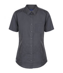 Style Features Womens Short Sleeve End On End Shirt Casual Slim Fit Double Fold Front Classic Collar Contrast Back Yoke Tab Contrast Under Sleeve Hem Facing Contrast Side Seam Gussets Left...
