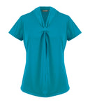 Style Features Womens Short Sleeve Knot Detail Knit Top Vee Neck "Cool Breeze" Comfort Knit Fabric   FABRIC : Front: 100% Polyester Chiffon Back: 95% Viscose 5% Elastane Slub Knit...