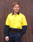 High Visibility Long Sleeve Work Shirts 190gsm - 100% Cotton Drill Two button down chest pockets with mitered corners and pen partition Two piece collar Contrast split front/back, collar and on...