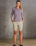 Styling: Flat front. Pockets on sides and back